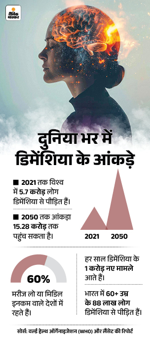 Dementia There is a disease that affects memory, meditation and ability to think. According to the World Health Organization (WHO), by 2021, around 5 crore 70 million people worldwide were suffering from it.