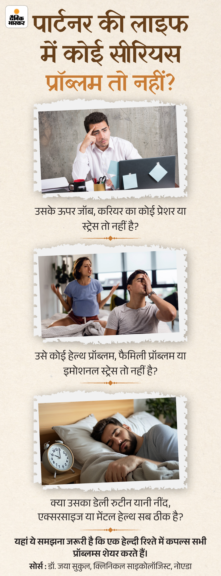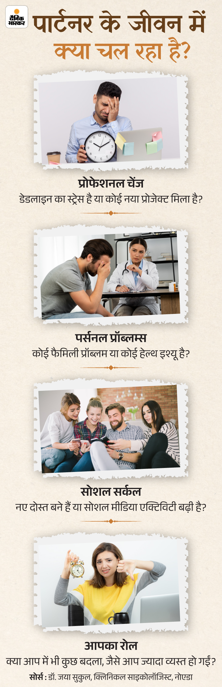 Time is not all right, but efforts. If there is more stress in the partner’s life, then it can be just a phase. This means that he needs more support at this time. On the other hand, if there are signs of deception, then find out its clue. Take professional help if necessary.