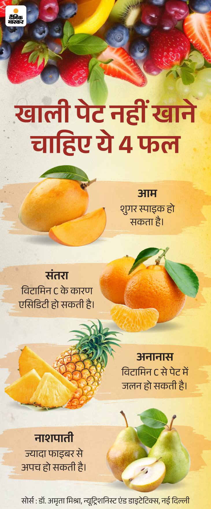 Answer- Nutritionist Dr. Amrita Mishra says that some fruits, which are found to be more vitamin C, should avoid eating such fruits on an empty stomach.