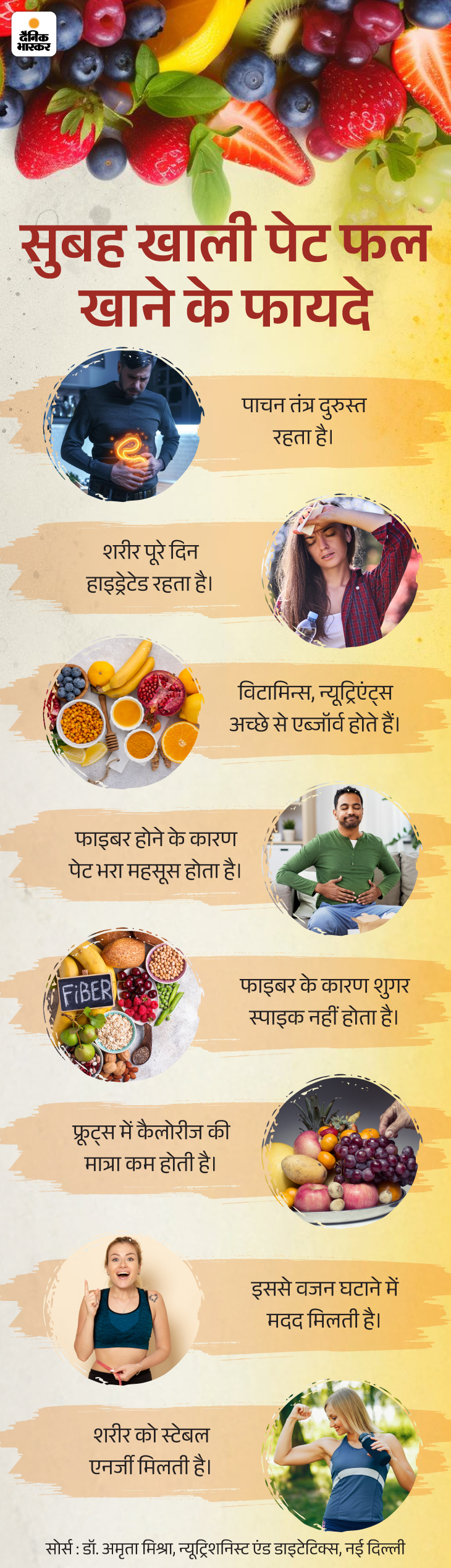 answer- Fruits are rich in many vitamins, minerals and antioxidants. When the stomach is completely empty, it absorbs the nutrients found in fruits. Let us understand it through graphic.