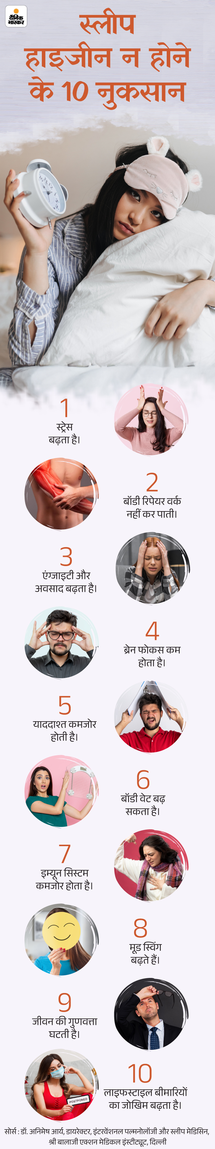 Good sleep hygiene means habits that make sleep good and deep. Nowadays our sleep is affected due to work pressure, phone addiction and irregular routine. But research suggests that not getting good sleep increases stress, weakens the immune system and can even cause heart diseases. According to the World Health Organization, good sleep of 7-8 hours daily improves health and increases the quality of life.
