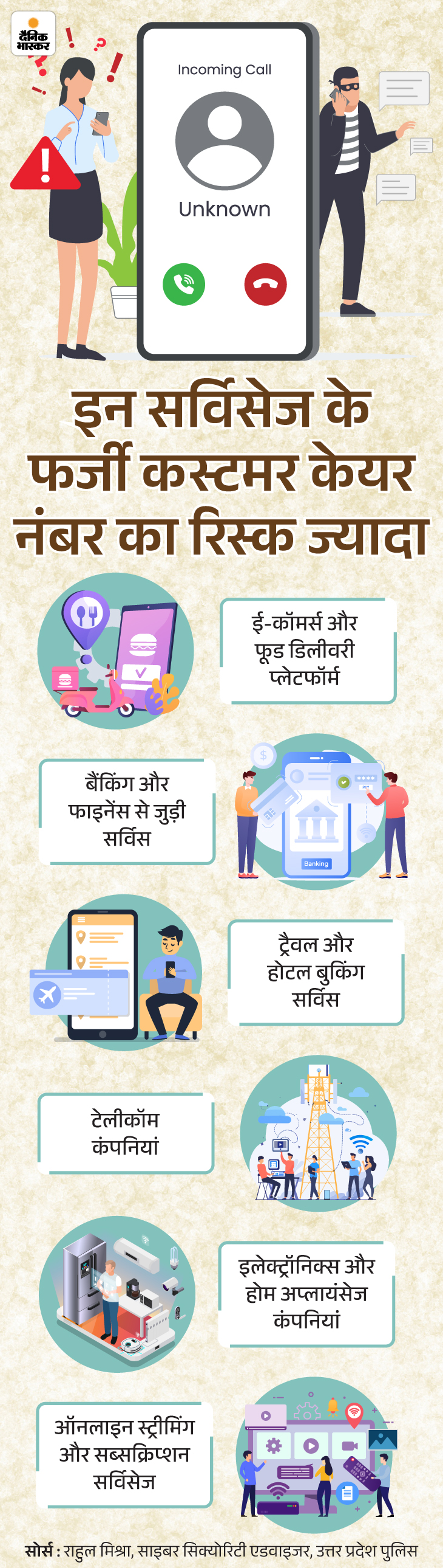 answer- Fake customer care numbers on Google are more likely in services that demand financial transactions, account security and immediate help. Understand it from the graphic below-