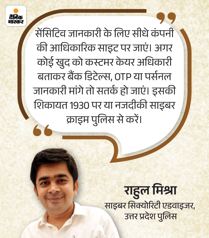 Apart from this, file an online report on the National Cyber Crime Reporting portal www.cybercrime.gov.in. If the money is deducted from your account or financial information has reached the scammers, then contact your bank immediately. Also inform the concerned company so that they are careful with this fake number.