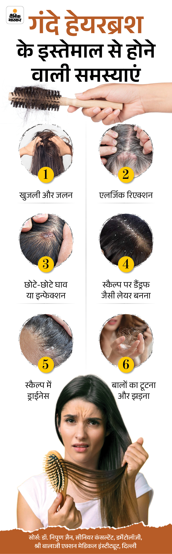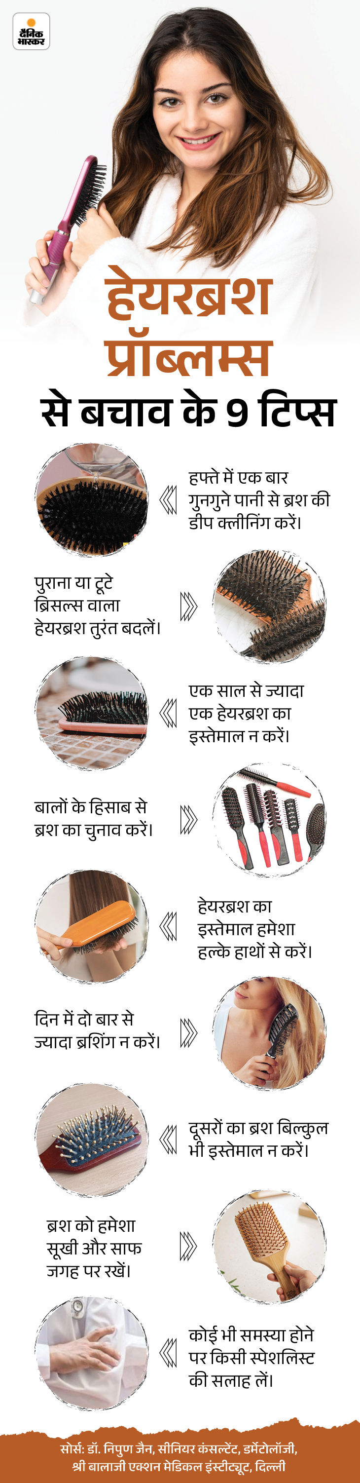 answer- Dermatologist Dr. Nipun Jain explains that there are different brushes for all types of hair. If the right brush is chosen, the hair breaks less and the scalp also remains healthy. Such as-