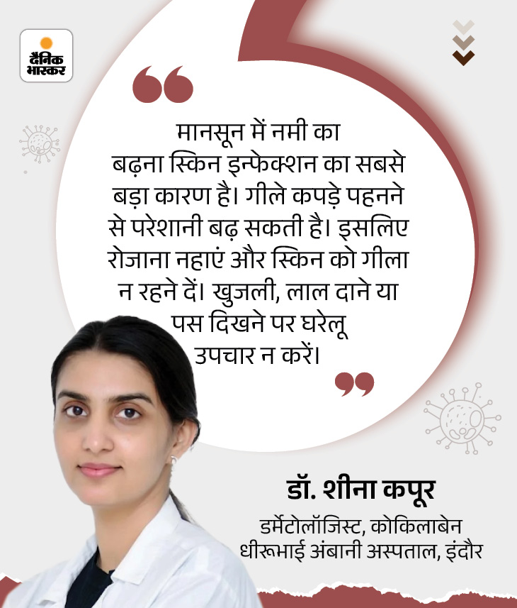 Rain Skin related problems increase rapidly during the season. In the last few days, the number of skin patients has increased by 10 times in Hamidia Hospital and JP Hospital in Bhopal, the capital of Madhya Pradesh. Instead of 10-12 patients daily, 100 to 150 people are getting upset with fungal and bacterial infections and are reaching the doctor. The main reason for this is the increased moisture in the weather, which promotes ringworm, itching and other infections.