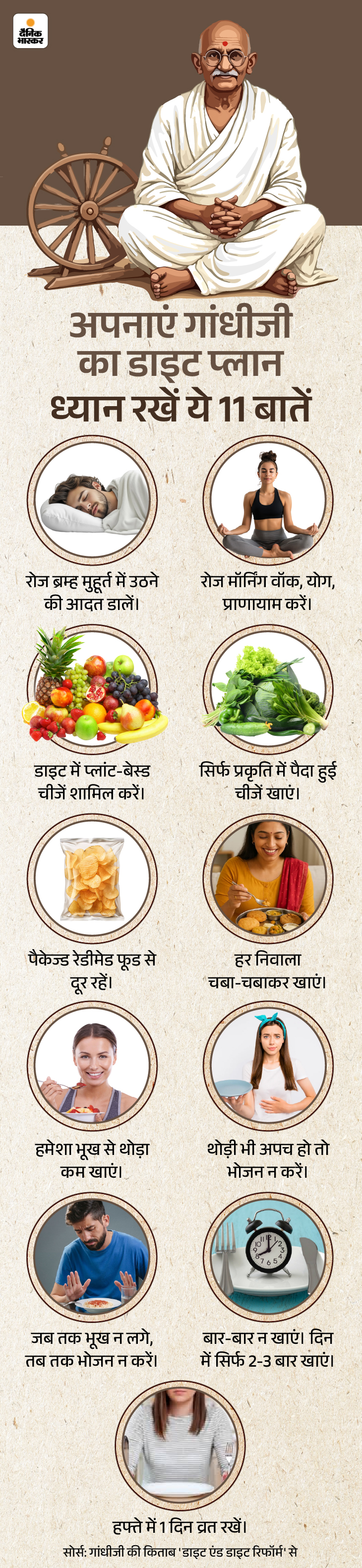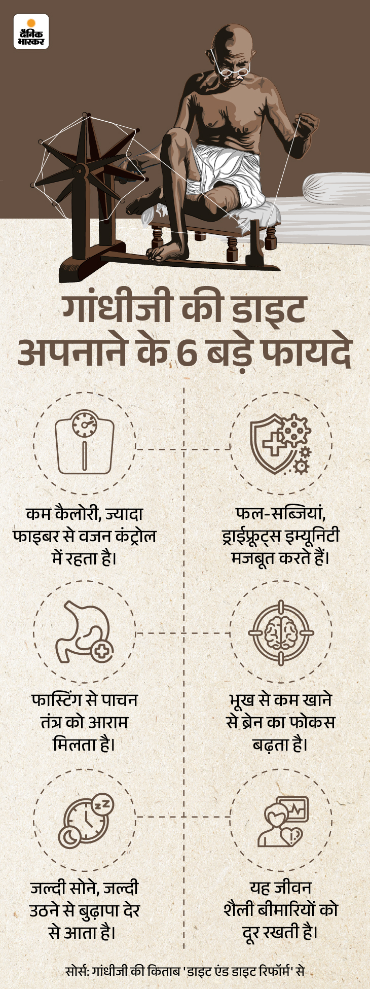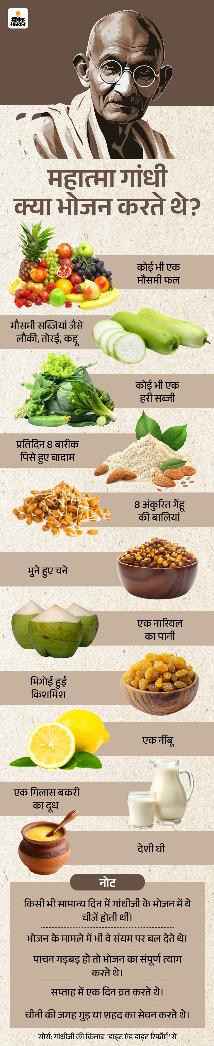 In Mahatma Gandhi’s book ‘Diet and Diet Reform’, published in 1949, he considered the diet not just food, but a part of life. He used to insist on eating unique food, fruits, dry fruits, milk and green vegetables. They used to say that the body, mind and soul are healthy with healthy diet.