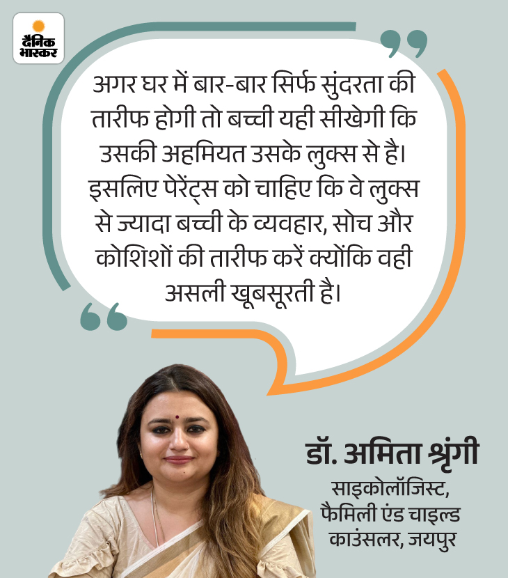 If the mother talks about herself all the time, like ‘thick feeling’, ‘not bunny’, ‘not put cream’, then the message goes to the child’s mind that beauty is the most important thing. She starts believing that looking good is the biggest identity of being a woman. This thing inadvertently connects his self -value with looks.