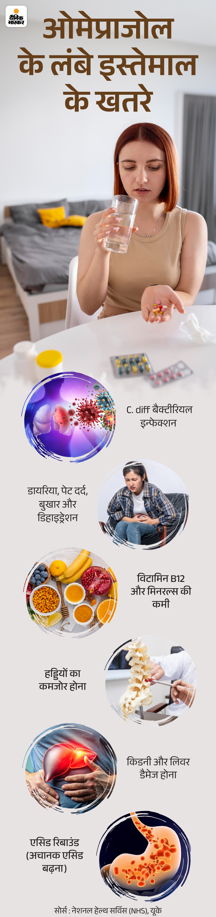 answer- The main warning of NHS focuses on long use. PPI drugs reduce stomach acids, reducing good bacteria and can increase dangerous bacteria such as C. Dificile. This infection affects the intestines, causing diarrhea, abdominal pain, fever and dehydration. In serious cases, there may be a hurry to be hospitalized. Other hazards include vitamin B12 deficiency, bone weakening (osteoporosis) and kidney problems. Understand the main dangers from the graphic below-